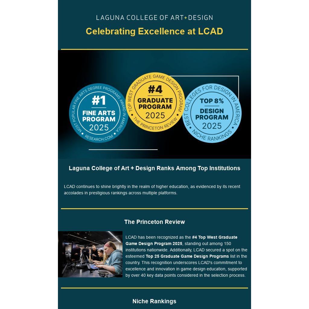 LCAD continues to shine brightly in the realm of higher education, as evidenced by its recent accolades in prestigious rankings across multiple platforms.