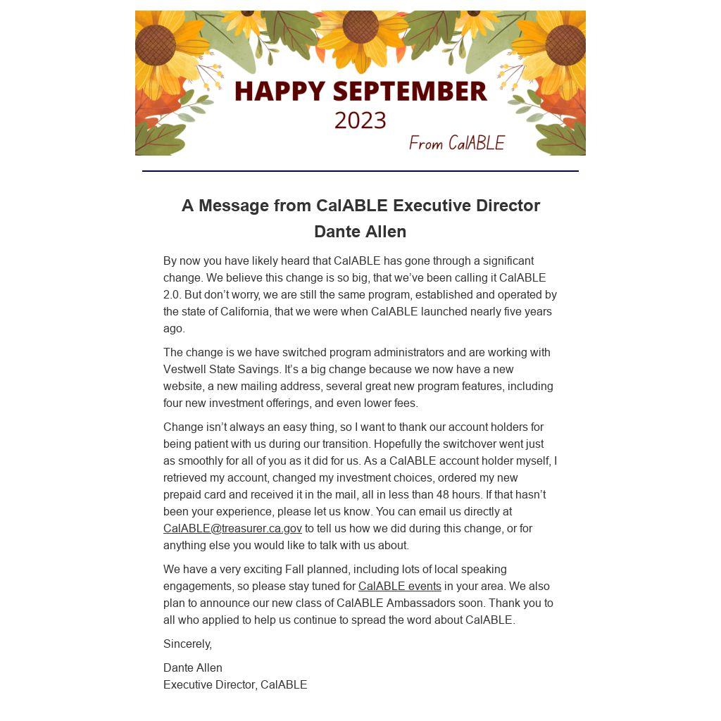 Want to open a CalABLE account, but not sure how? Need to finish setting up your account? Join us on September 27 from 2 - 3:30 PM PST for this informative webinar!