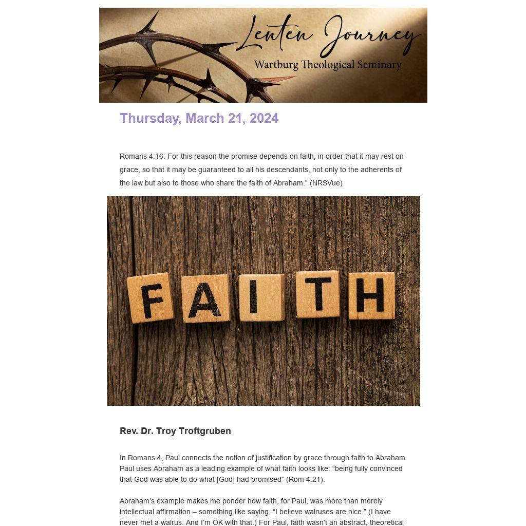 Lent is a season that invites us to live more genuinely into faith. Like Abraham did. One step at a time.