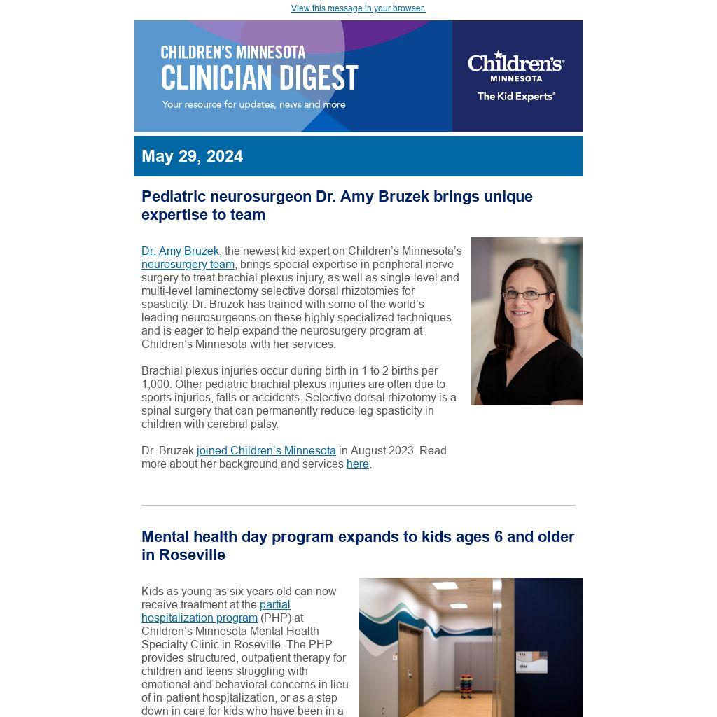 If you find this newsletter valuable, we invite you to send this email to your colleagues so that they can learn about what's happening at Children's Minnesota. If this email was forwarded to you, we encourage you to sign up for the Children's Minnesota Clinician Digest.