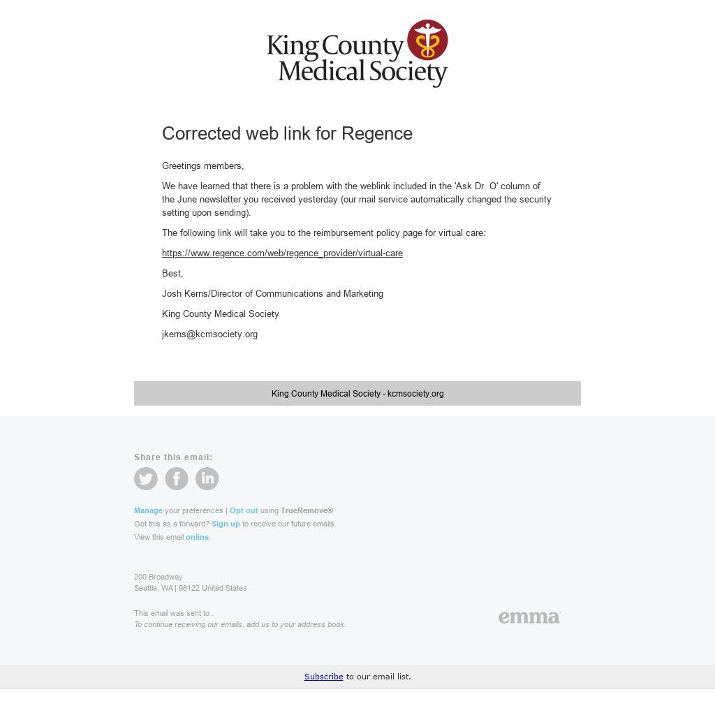 Corrected web link for Regence