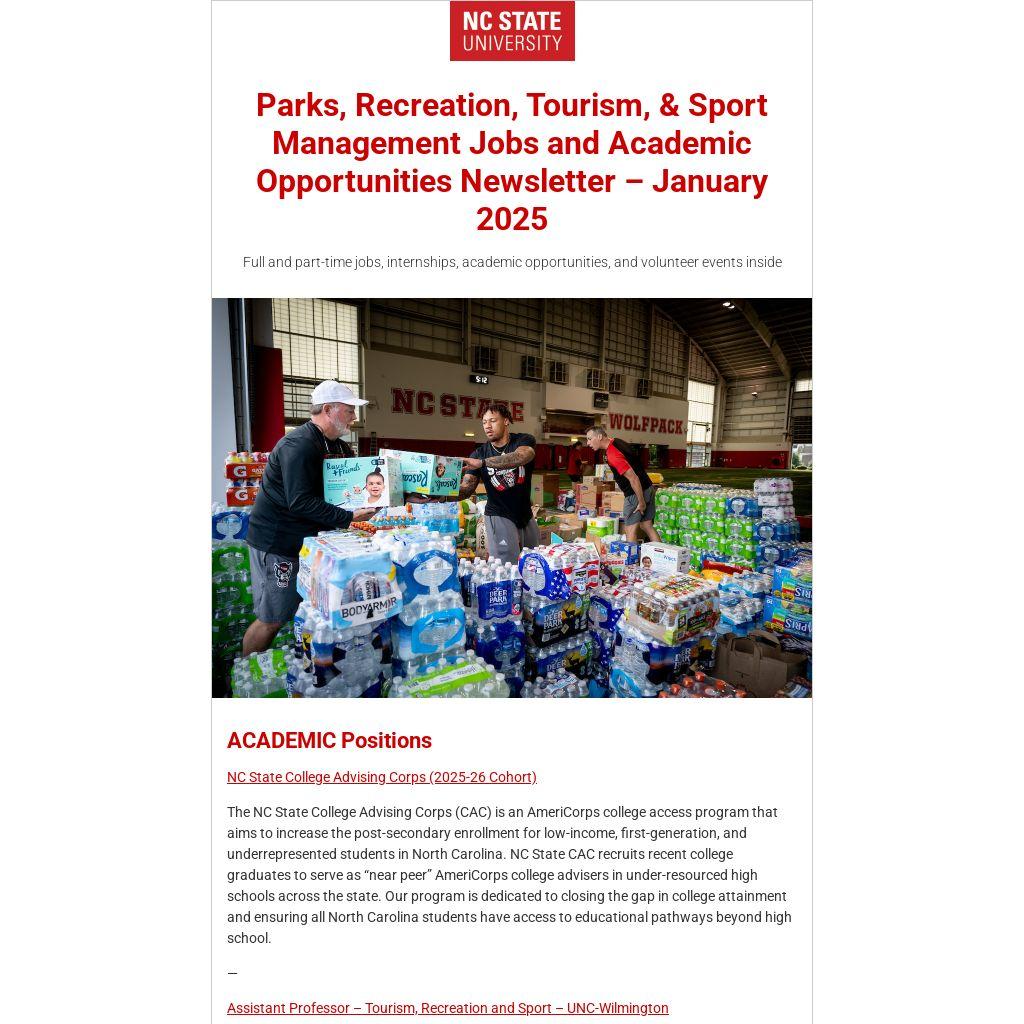 Parks, Recreation, Tourism, & Sport Management Jobs and Academic Opportunities Newsletter – January 2025