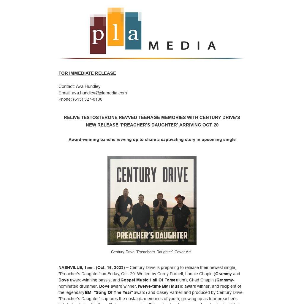 "With a band named Century Drive, and made up of literally two sets of brothers, and Pop Country Music that’s packed with memorable lyrics and music; it’s pretty hard not to have their music in anyone’s regular playlist!" - Michael Tait, 3x Grammy winner
