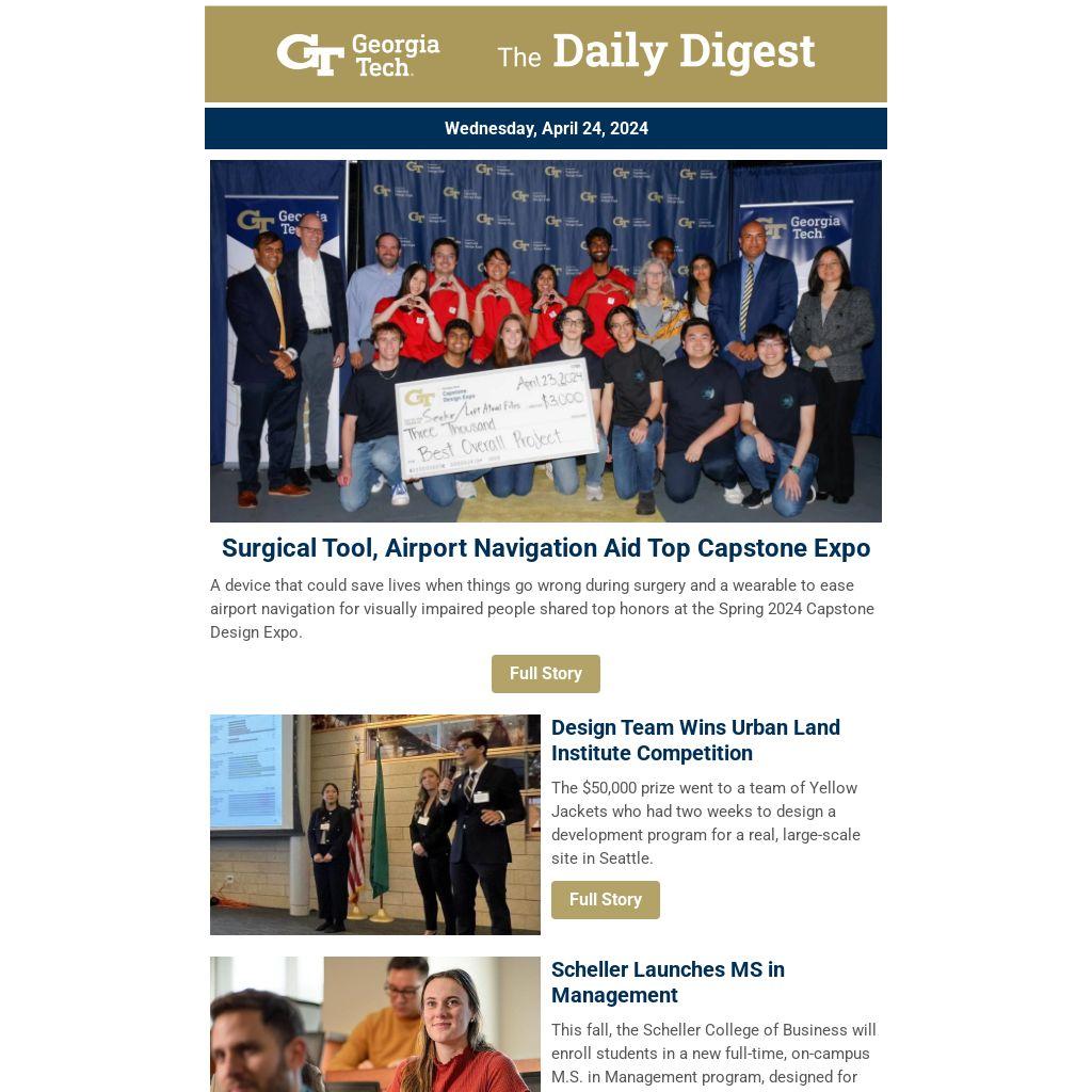 A device that could save lives when things go wrong during surgery and a wearable to ease airport navigation for visually impaired people shared top honors at the Spring 2024 Capstone Design Expo.