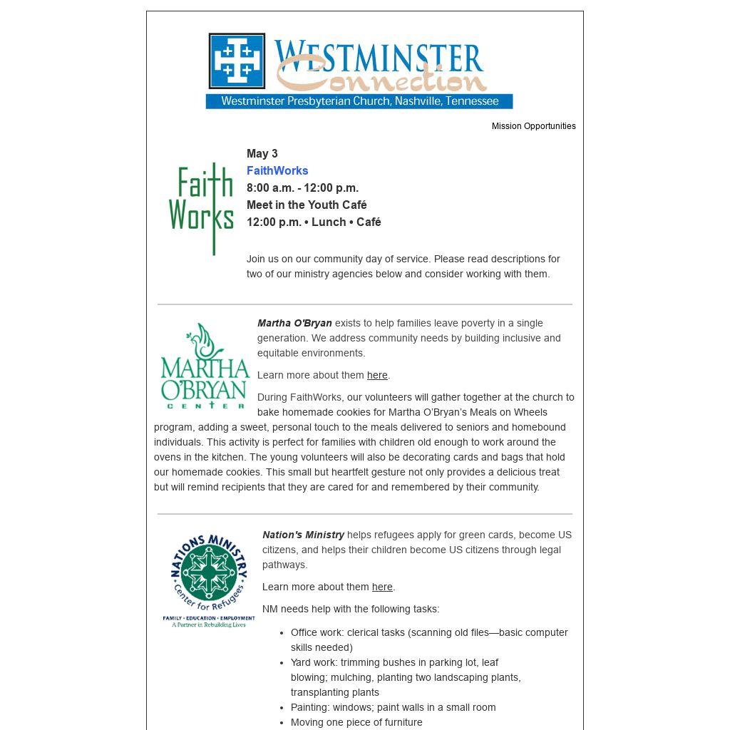 Our thanks to the Society of Saint Andrew for coordinating all of these efforts. Westminster folks are grateful to be a part of making it all happen.