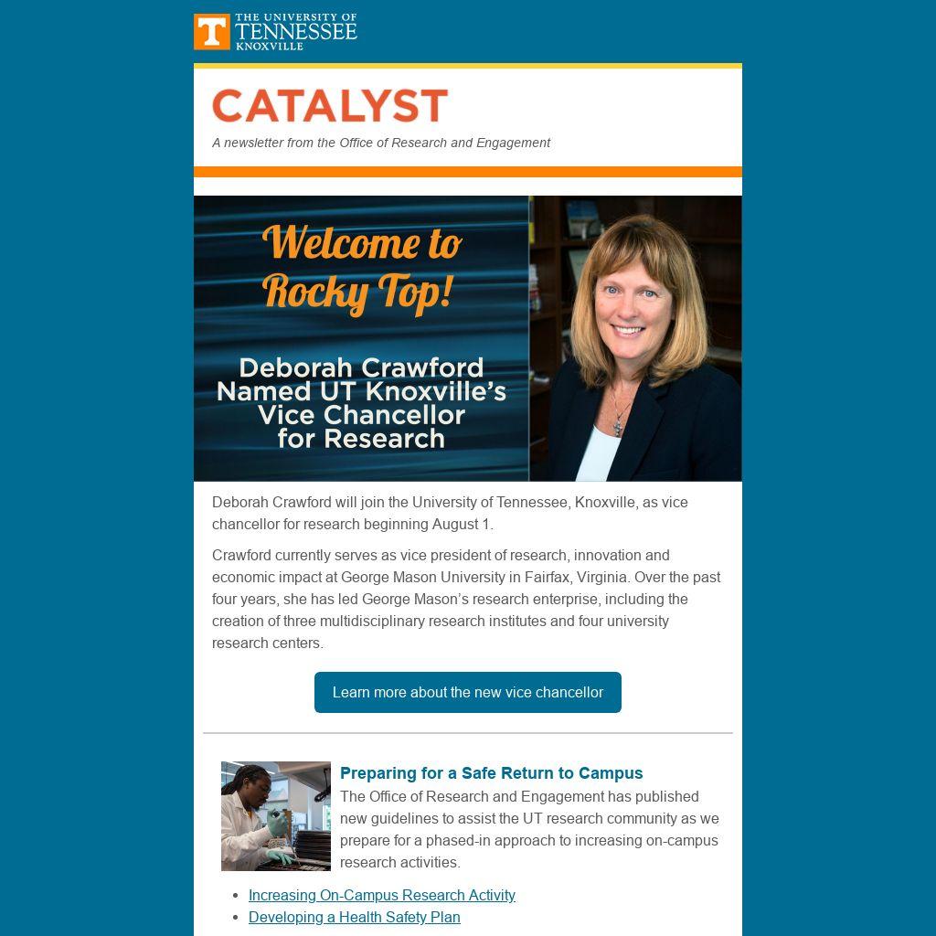 Deborah Crawford will join the University of Tennessee, Knoxville, as vice chancellor for research beginning August 1.