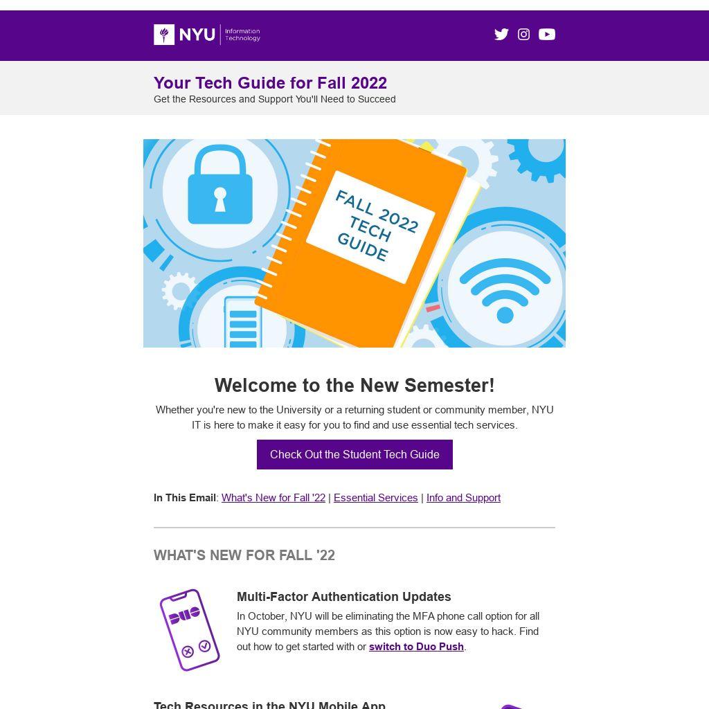 Welcome to the New Semester! Whether you're new to the University or a returning student or community member, NYU IT is here to make it easy for you to find and use essential tech services.