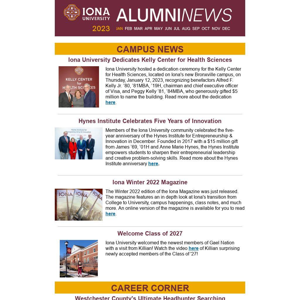 The Winter 2022 edition of the Iona Magazine was just released. The magazine features an in depth look at Iona's transition from College to University, campus happenings, class notes, and much more. An online version of the magazine is available for you to read here.