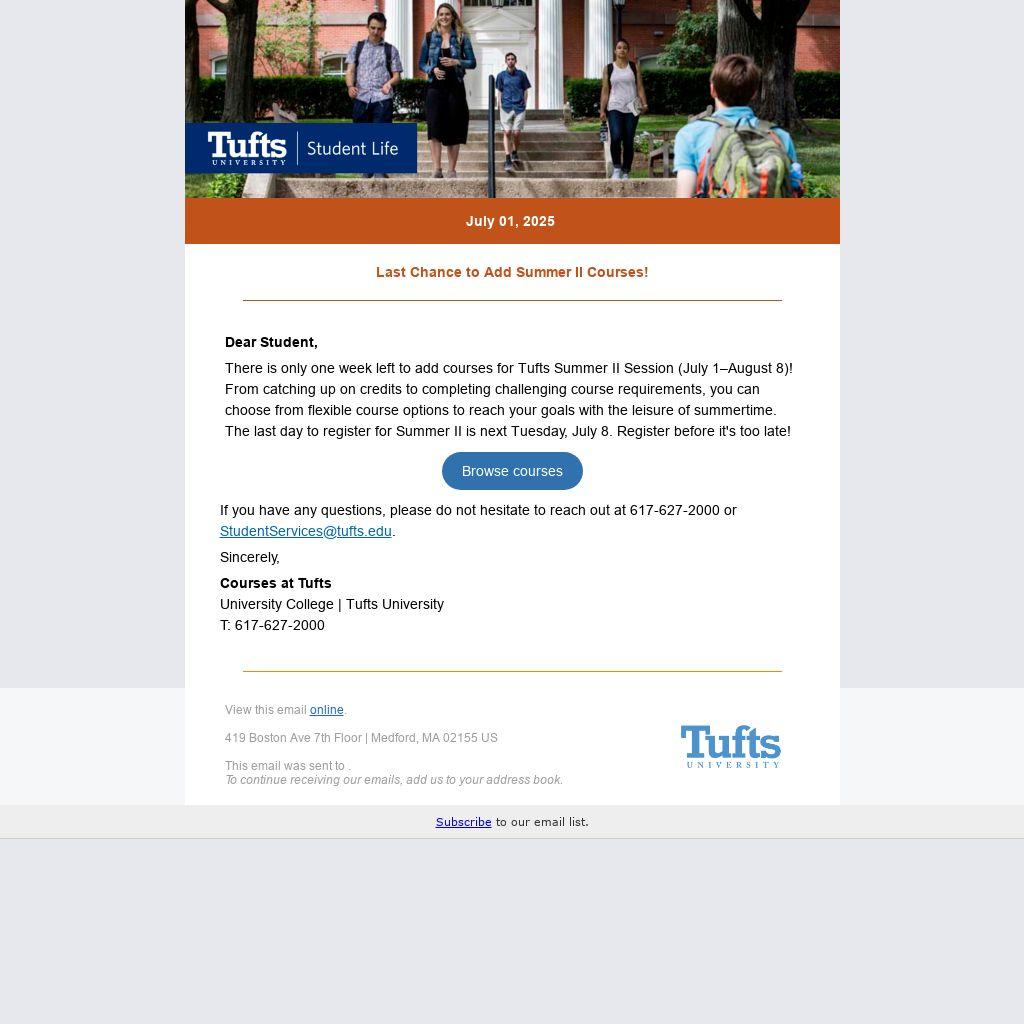 There is only one week left to add courses for Tufts Summer II Session.