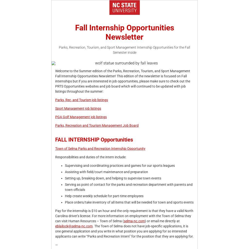 To apply, please email a resume and cover letter to alana.sullivan@wolfpacksportsproperties.com. The Wolfpack Sports Properties staff will review resumes and select candidates to interview after the submission deadline. We look forward to hearing from you!