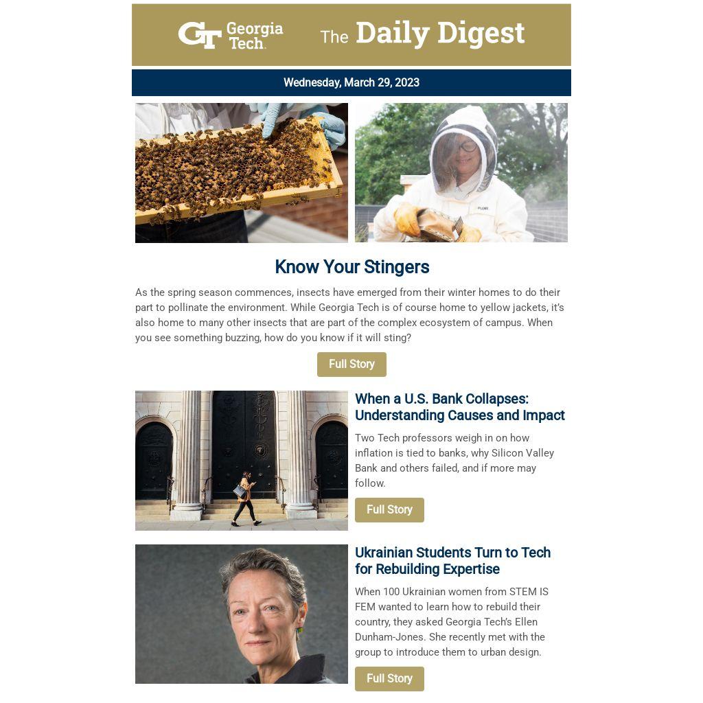 As the spring season commences, insects have emerged from their winter homes to do their part to pollinate the environment. While Georgia Tech is of course home to yellow jackets, it’s also home to many other insects that are part of the complex ecosystem of campus. When you see something buzzing, how do you know if it will sting?