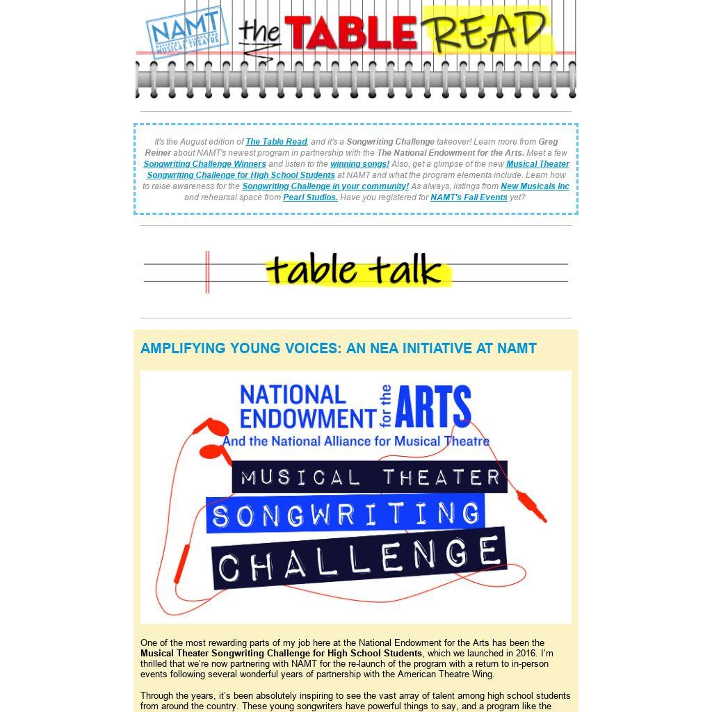 Check out last month's edition of The Table Read at namt.org!