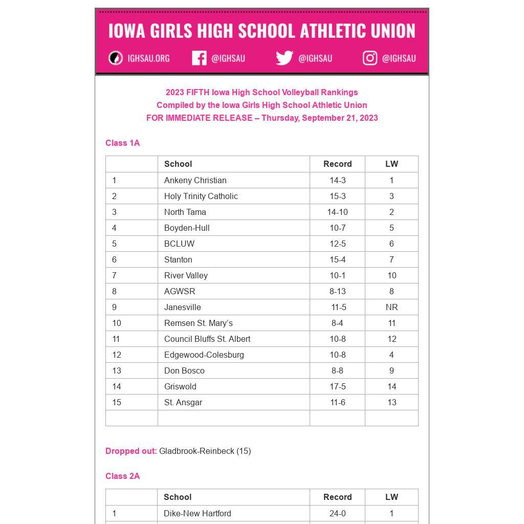 2023 FIFTH Iowa High School Volleyball Rankings