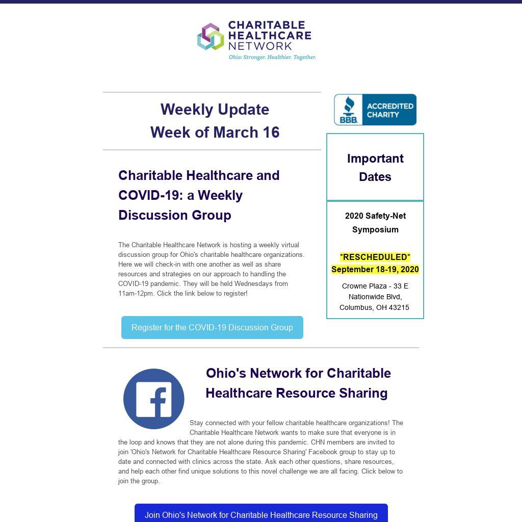 We live in a digital world, which is great, until every organization you have ever given your email to updates you on how they are handling COVID-19. We know, it can be a bit much. There are so many great resources scattered across these emails and it can be hard to find what your need. The CHN has developed a compiled document with all of the resources we've encountered in response to COVID-19. Food resources, handouts, opioid treatment response, medical supply support, mental health support, how to work from home, and more. It will be a one stop shop! It is a Google Doc that we will be updating in real time - so you will always have access to the most updated version.