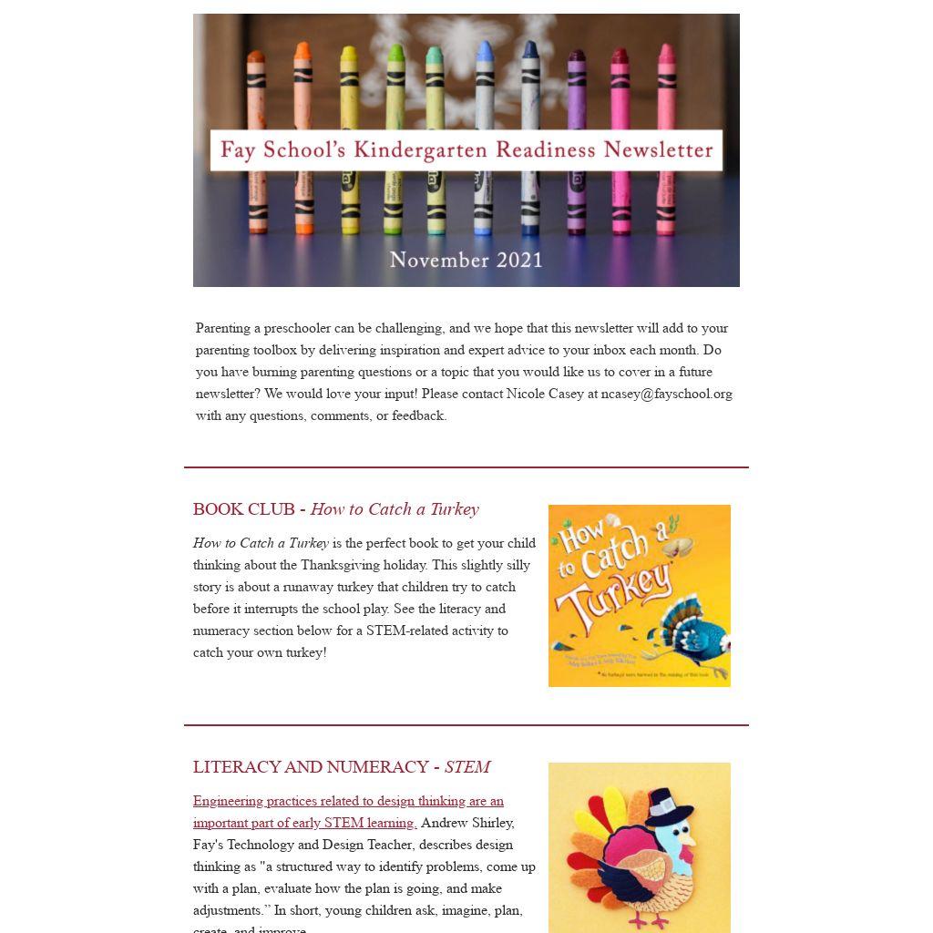 Parenting a preschooler can be challenging, and we hope that this newsletter will add to your parenting toolbox by delivering inspiration and expert advice to your inbox each month. Do you have burning parenting questions or a topic that you would like us to cover in a future newsletter? We would love your input! Please contact Nicole Casey at ncasey@fayschool.org with any questions, comments, or feedback.