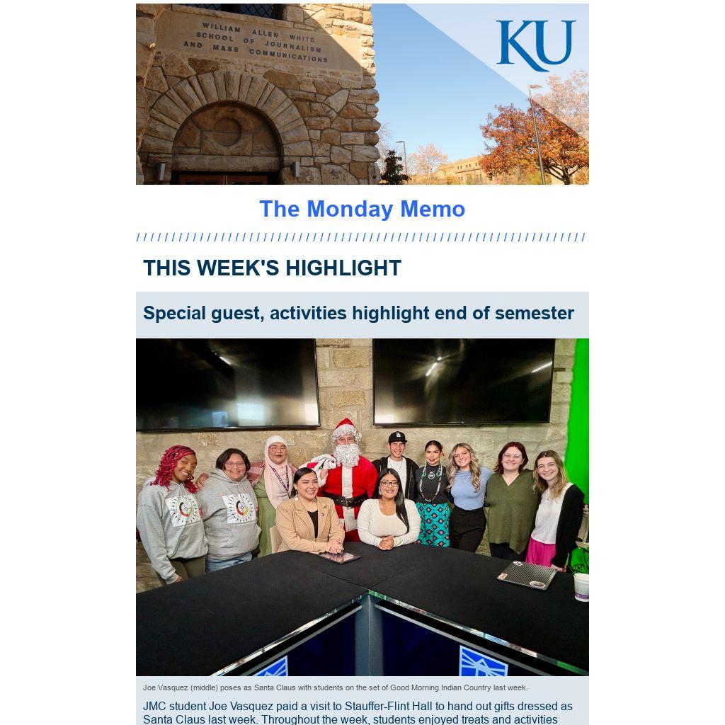 The Monday Memo will return after the winter break. Happy Holidays from the JMC School!