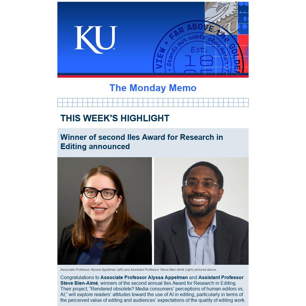 Congratulations to Associate Professor Alyssa Appelman and Assistant Professor Steve Bien-Aimé, winners of the second annual Iles Award for Research in Editing. Their project, “Rendered obsolete? Media consumers’ perceptions of human editors vs. AI,” will explore readers’ attitudes toward the use of AI in editing, particularly in terms of the perceived value of editing and audiences’ expectations of the quality of editing work.