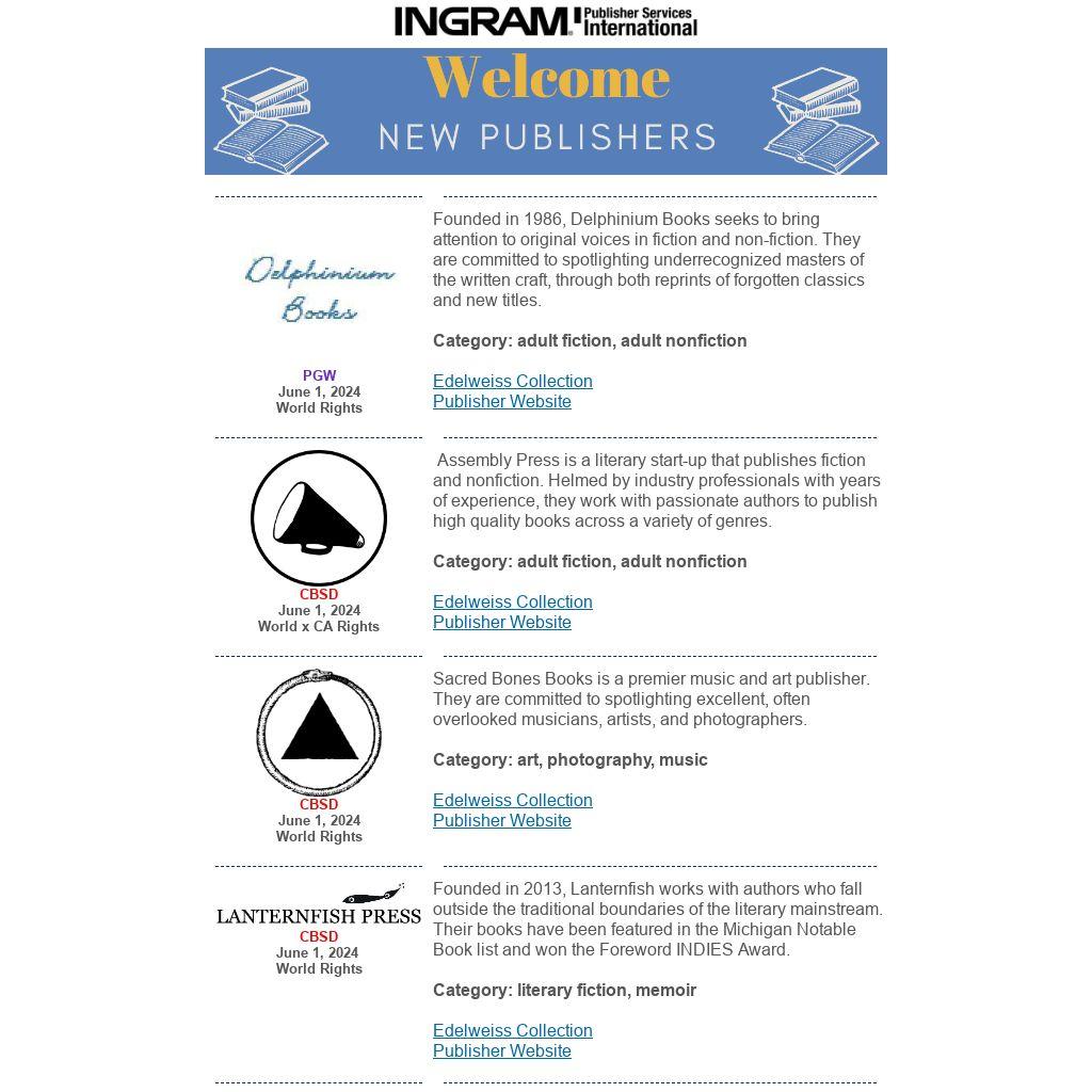 Prior to their move to Publishers Group West, they were represented and distributed by Consortium.