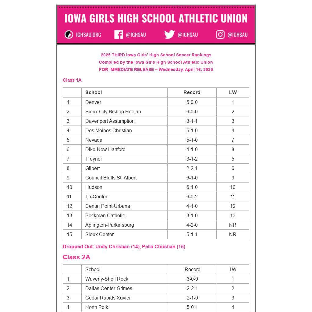 2025 THIRD Iowa Girls’ High School Soccer Rankings