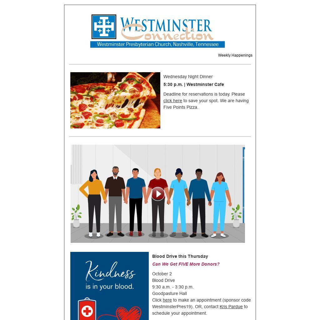 Westminster volunteers to help sort, pack, and hand out food on the third Saturday of each month.
