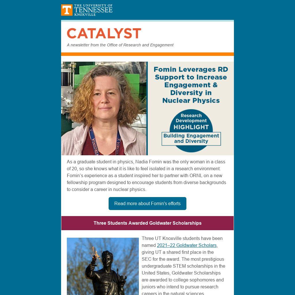 As a graduate student in physics, Nadia Fomin was the only woman in a class of 20, so she knows what it is like to feel isolated in a research environment. Fomin’s experience as a student inspired her to partner with ORNL on a new fellowship program designed to encourage students from diverse backgrounds to consider a career in nuclear physics.