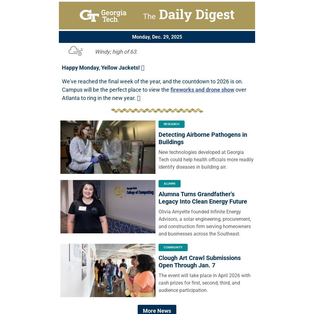 We've reached the final week of the year, and the countdown to 2026 is on. Campus will be the perfect place to view the fireworks and drone show over Atlanta to ring in the new year. 🎇