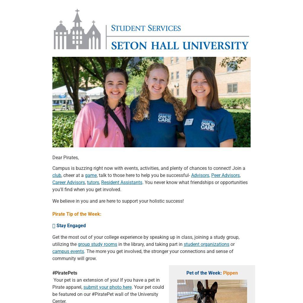 At Seton Hall, we are committed to being a safe, supportive, and inclusive living and learning environment that fosters academic, spiritual, and personal growth. Your health, safety, and success are paramount in all we do. We seek to foster an environment of mutual respect and dignity for each other and expect each community member to take seriously their role in fostering an environment in which dignity and respect for each other are observed. Learn more about our Student Code of Conduct.