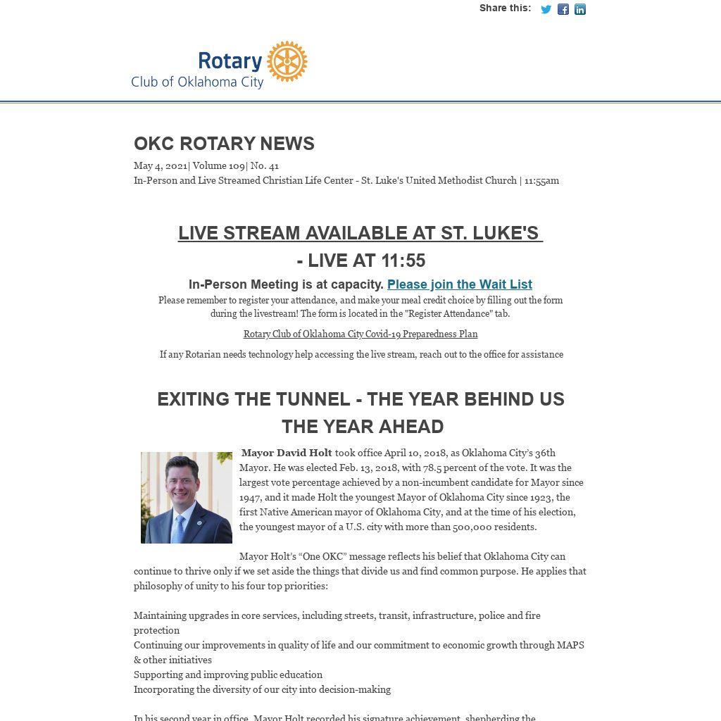 | OKC Rotary NewsMay 4, 2021| Volume 109| No. 41