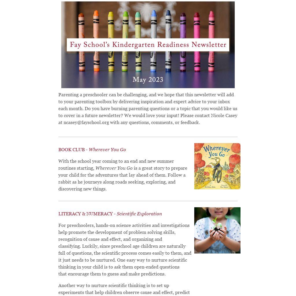 Parenting a preschooler can be challenging, and we hope that this newsletter will add to your parenting toolbox by delivering inspiration and expert advice to your inbox each month. Do you have burning parenting questions or a topic that you would like us to cover in a future newsletter? We would love your input! Please contact Nicole Casey at ncasey@fayschool.org with any questions, comments, or feedback.