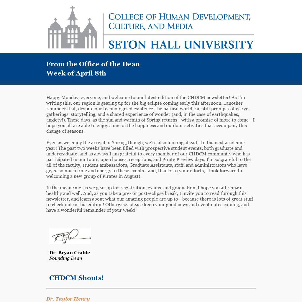 In the meantime, as we gear up for registration, exams, and graduation, I hope you all remain healthy and well. And, as you take a pre- or post-eclipse break, I invite you to read through this newsletter, and learn about what our amazing people are up to—because there is lots of great stuff to check out in this edition! Otherwise, please keep your good news and event notes coming, and have a wonderful remainder of your week!