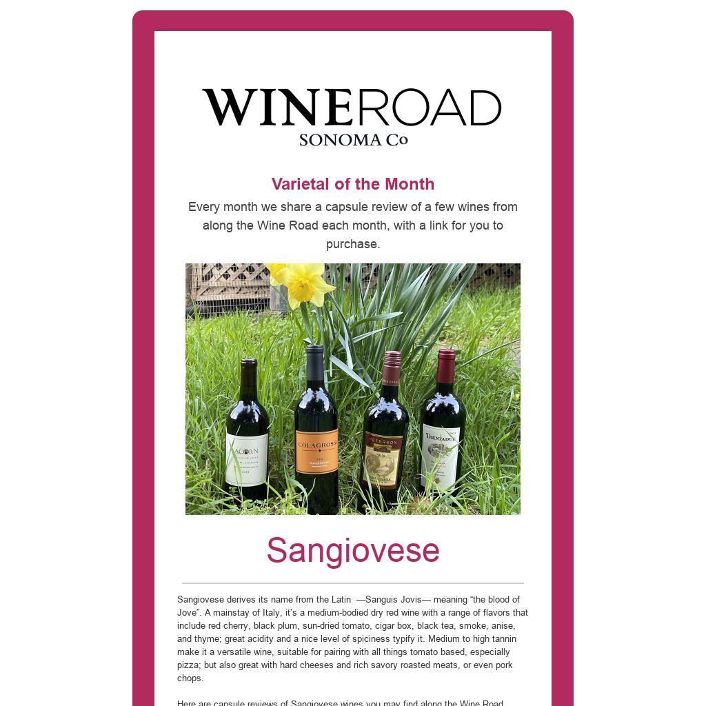 Here are capsule reviews of Sangiovese wines you may find along the Wine Road.