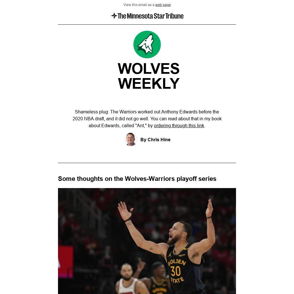 The Wolves made the Lakers look tired late in games and later as the series continued. Given the age of the Warriors’ top players (Butler is 35, Curry is 37, Green is 35), perhaps this series will also be a battle of attrition. That would favor the Wolves, at least on the surface.