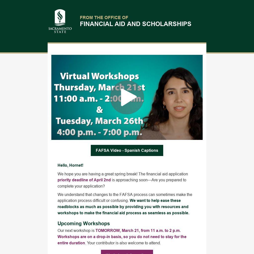 We hope you are having a great spring break! The financial aid application priority deadline of April 2nd is approaching soon—Are you prepared to complete your application?