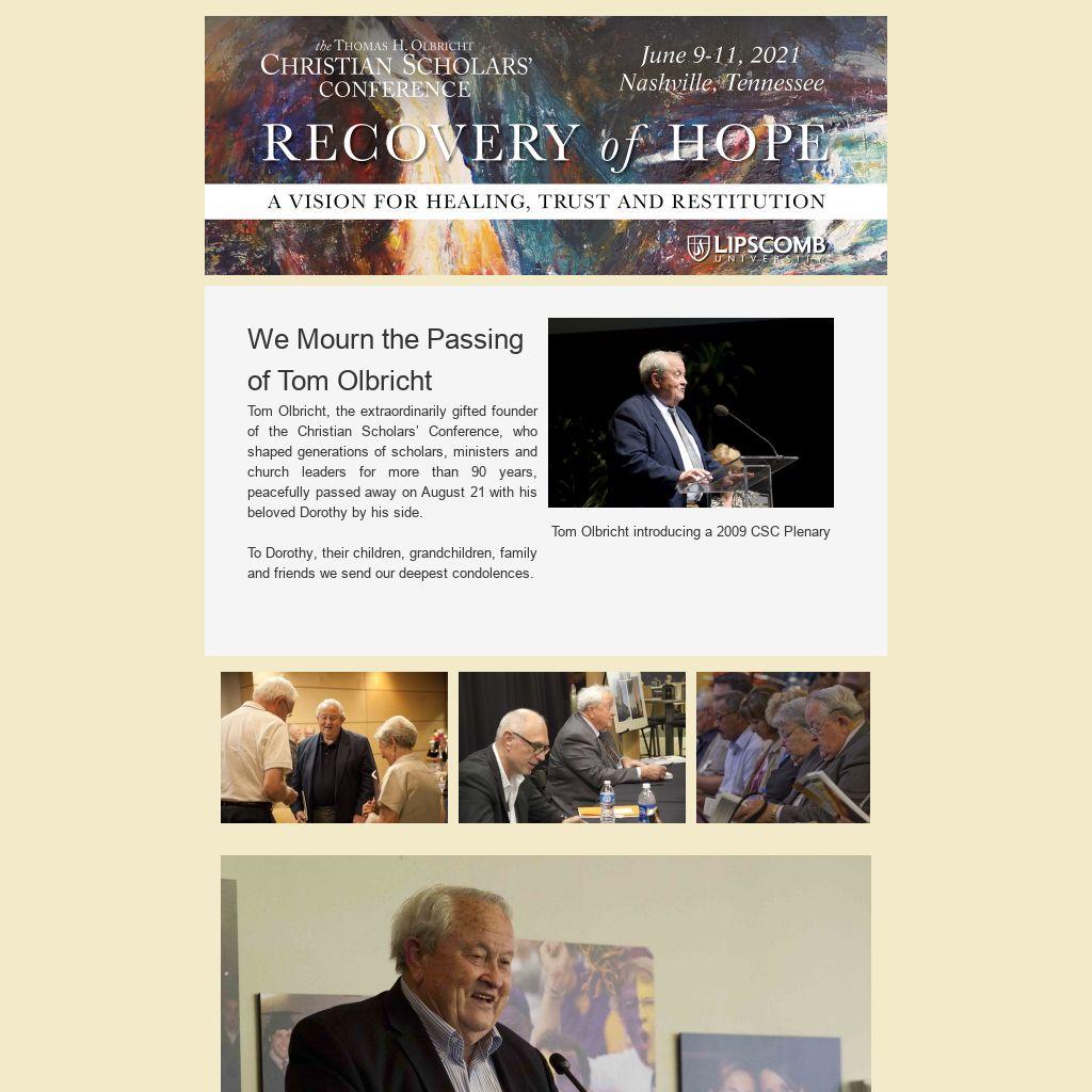 Tom Olbricht significantly contributed to theological education in Churches of Christ and to the broader world of scholarship in rhetorical studies, church history and congregational life. He served vital academic and administrative roles during his years at Harding (1954-55), Dubuque (1955-59), Penn State (1962-67), ACU (1967-86), and Pepperdine (1986-96). In these contexts his scholarly work and leadership brought national and international recognition to each university.