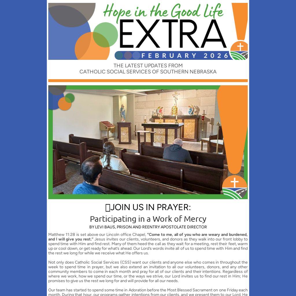 We're excited to share the many ways CSS accomplishes this important work. Efforts are underway to produce a short video highlighting our regions, our programs & services, our team members/volunteers, and our faith. It will premiere during the gala program and promises to be a highlight of the evening. Please celebrate with us on March 14th in Lincoln!