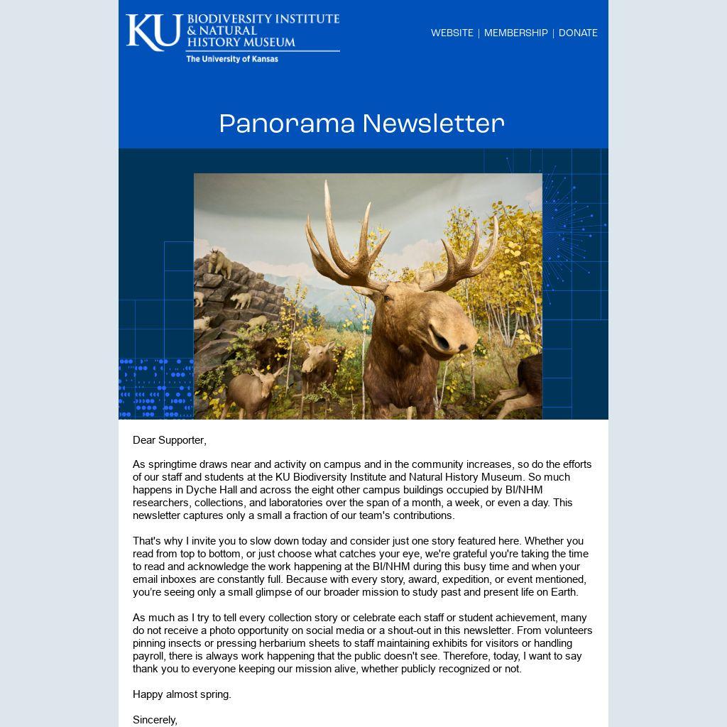 As springtime draws near and activity on campus and in the community increases, so do the efforts of our staff and students at the KU Biodiversity Institute and Natural History Museum. So much happens in Dyche Hall and across the eight other campus buildings occupied by BI/NHM researchers, collections, and laboratories over the span of a month, a week, or even a day. This newsletter captures only a small a fraction of our team's contributions.