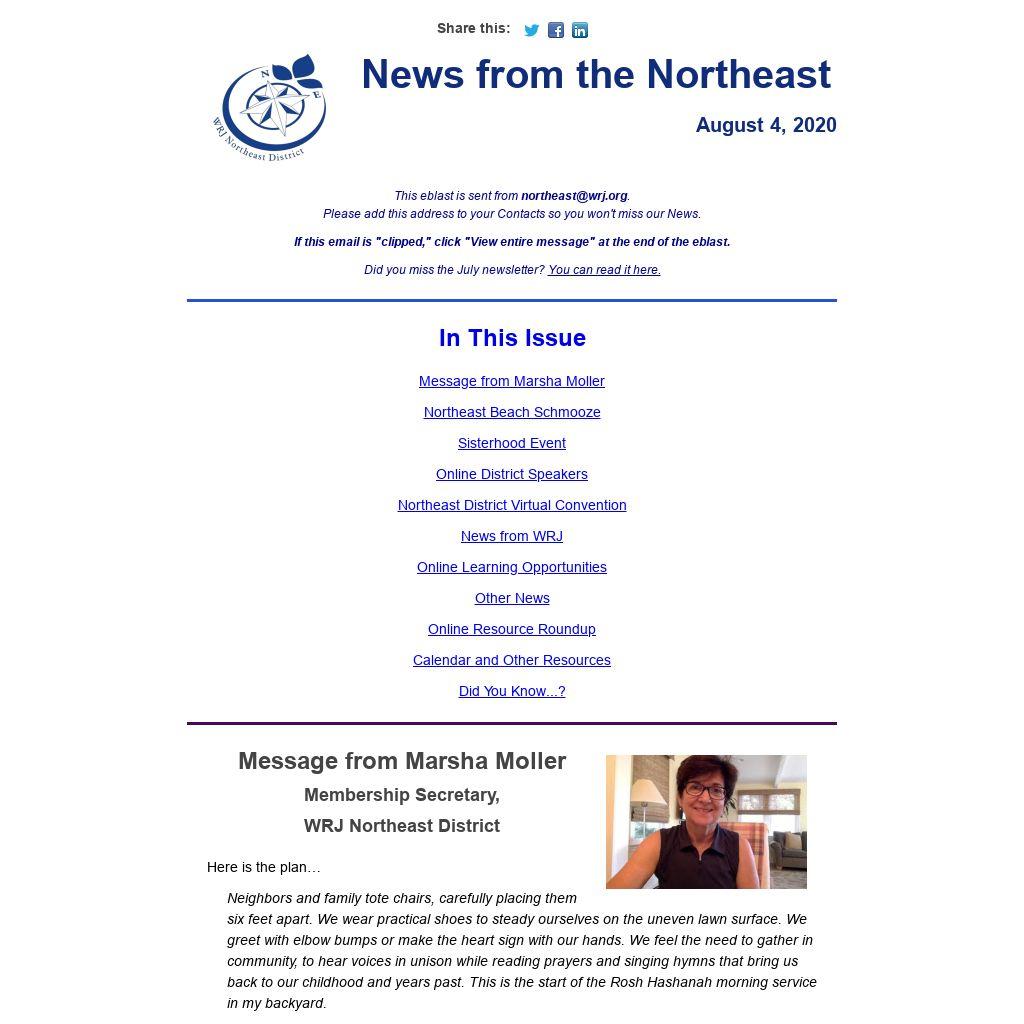 Let our connections be the starting point for our journey during Elul. Being with others, virtually or face to face, can rejuvenate our spirits to reckon with the past year. Consider engaging a sisterhood member in meaningful conversation filled with purpose and intention. (It may be easier and feel safer to start with a “sister.”) Then widen your outreach to those whose relationship with you is more complicated.