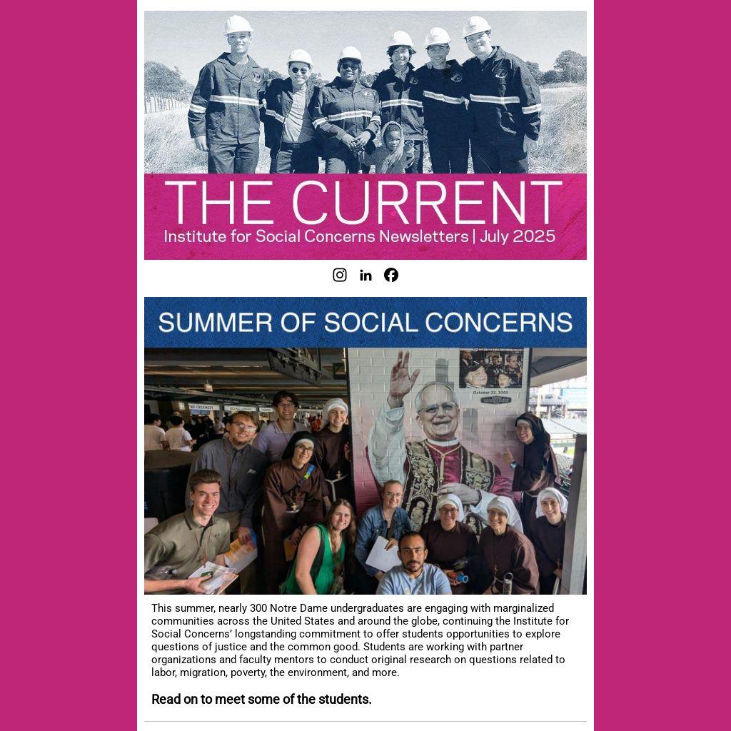 This summer, nearly 300 Notre Dame undergraduates are engaging with marginalized communities across the United States and around the globe, continuing the Institute for Social Concerns’ longstanding commitment to offer students opportunities to explore questions of justice and the common good. Students are working with partner organizations and faculty mentors to conduct original research on questions related to labor, migration, poverty, the environment, and more.