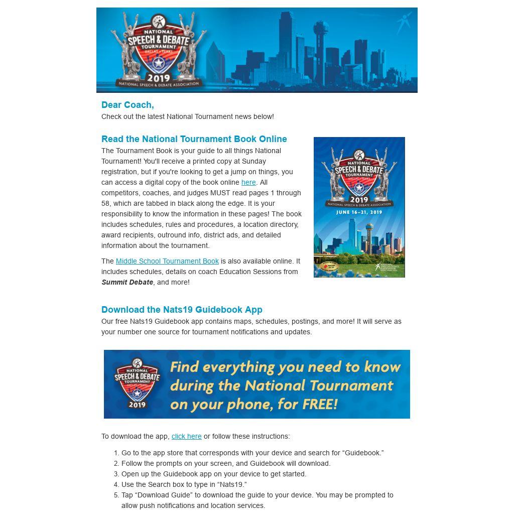 The Sheraton Dallas Hotel (North, Center, and South Towers) and adjoining Conference Center feature many elevators and escalators to get you to your competition rooms in a timely fashion. However, it is the fundamental responsibility of all contestants and judges to arrive on time to rounds. Due to the large volume of attendees at the National Tournament, you are strongly encouraged to arrive at least 90 minutes prior to the start of the first round to allow adequate time to board the elevators at least ONE HOUR in advance of round 1.