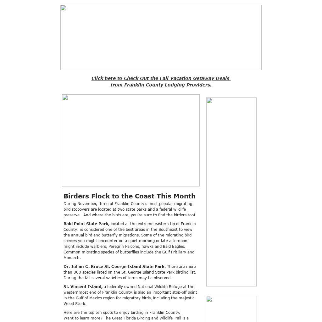 St. Vincent Island, a federally owned National Wildlife Refuge at the westernmost end of Franklin County, is also an important stop-off point in the Gulf of Mexico region for migratory birds, including the majestic Wood Stork. Here are the top ten spots to enjoy birding in Franklin County.