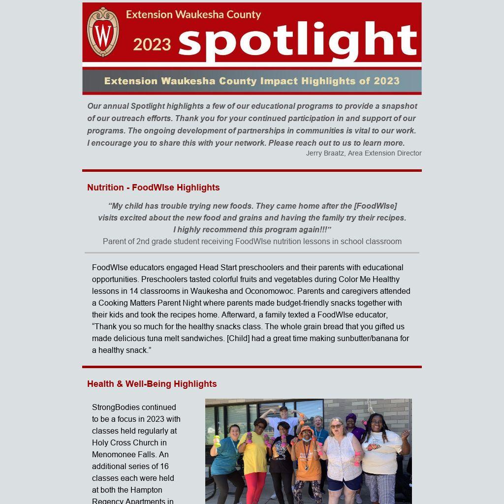 “ProHealth Care is proud to support and partner with UW-Madison Extension Waukesha County in their commitment to providing education that transforms communities. Their work to promote community safety and engagement has had an impact right in our own neighborhood.”