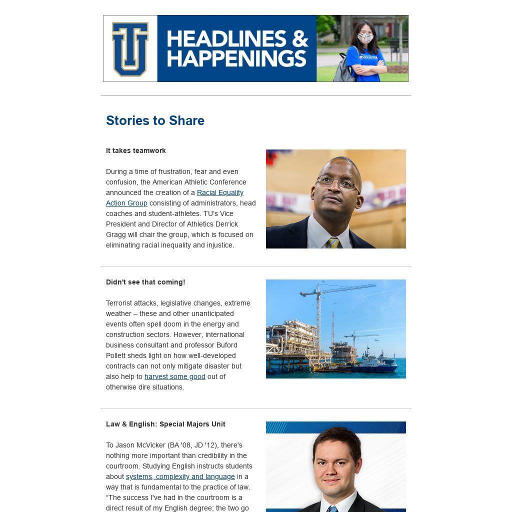 During a time of frustration, fear and even confusion, the American Athletic Conference announced the creation of a Racial Equality Action Group consisting of administrators, head coaches and student-athletes. TU’s Vice President and Director of Athletics Derrick Gragg will chair the group, which is focused on eliminating racial inequality and injustice.