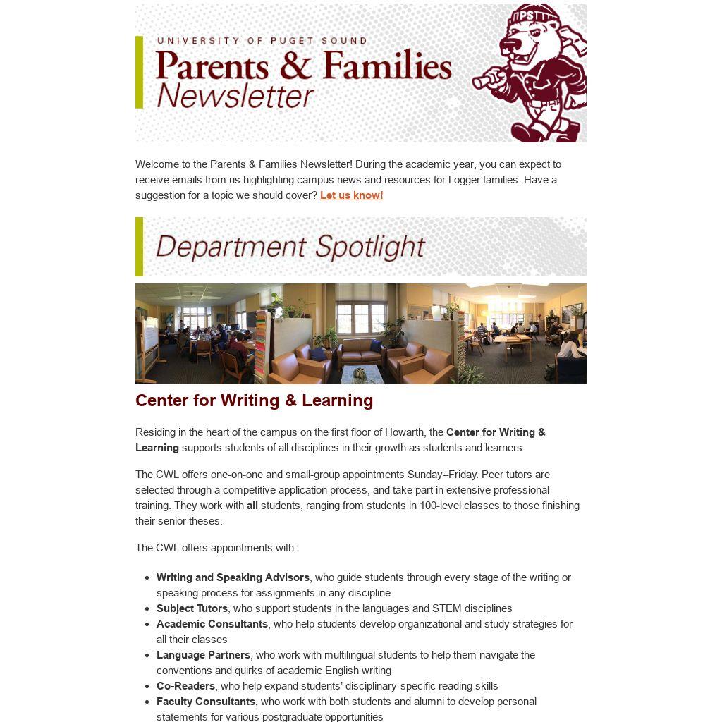 Welcome to the Parents & Families Newsletter! During the academic year, you can expect to receive emails from us highlighting campus news and resources for Logger families. Have a suggestion for a topic we should cover? Let us know!