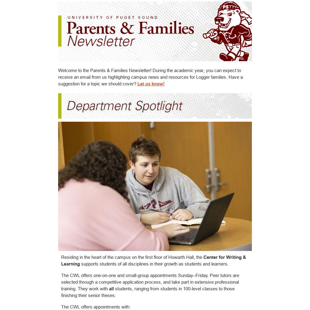 Welcome to the Parents & Families Newsletter! During the academic year, you can expect to receive an email from us highlighting campus news and resources for Logger families. Have a suggestion for a topic we should cover? Let us know!
