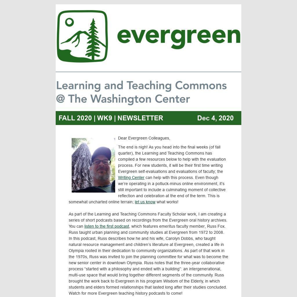 Do you have valuable resources for writing narrative evaluations? The Learning and Teaching Commons is building a library of resources to support all aspects of the narrative transcript: narrative evaluations of students, student self-evaluations, the academic statement, and student evaluations of faculty. If you have an advice guide you use with students or another resource you’ve found helpful, please send it to learningandteaching@evergreen.edu.