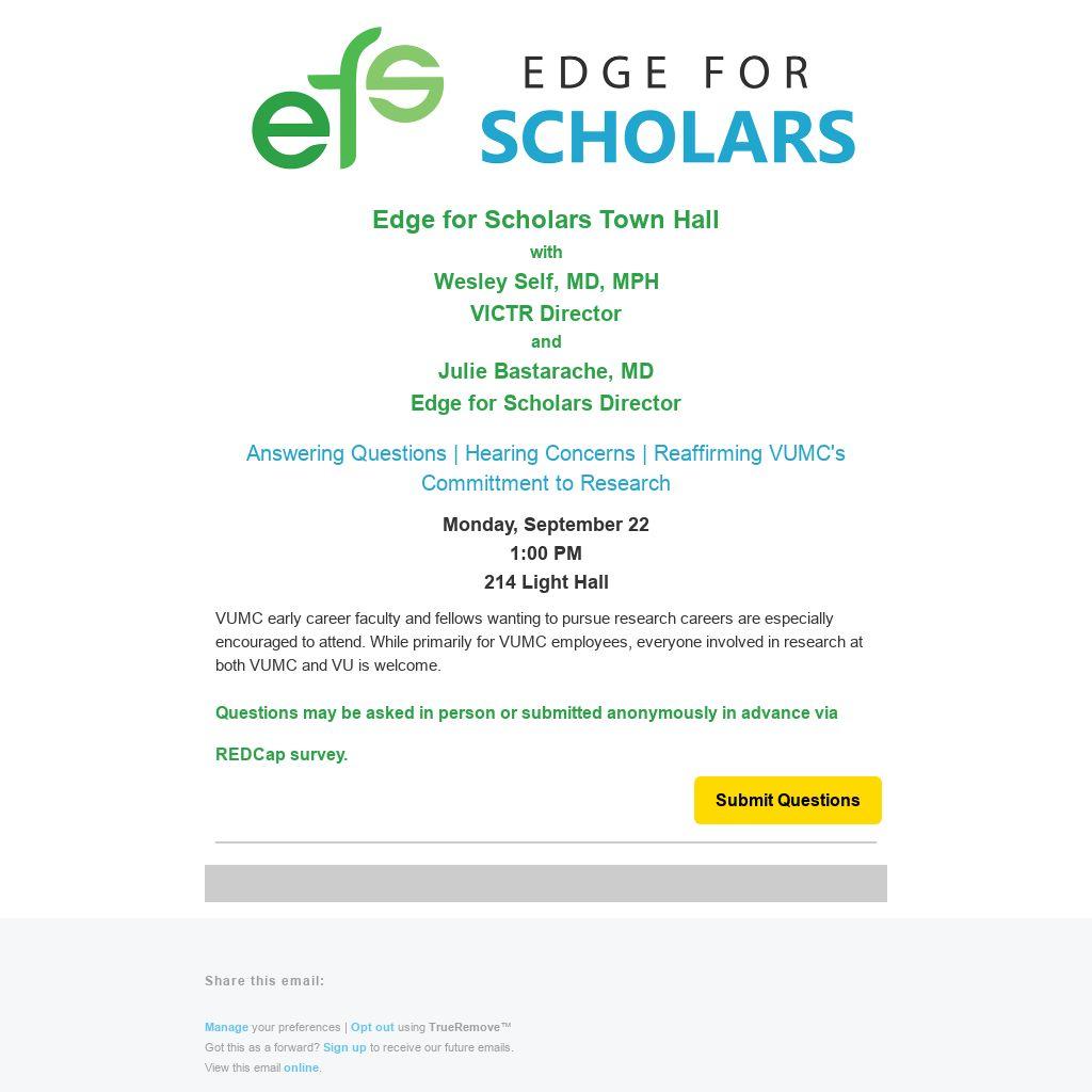 VUMC early career faculty and fellows wanting to pursue research careers are especially encouraged to attend. While primarily for VUMC employees, everyone involved in research at both VUMC and VU is welcome.