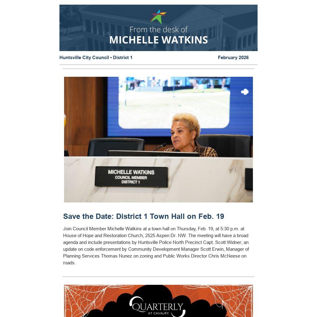Feb. 26: City Council Meeting, 5:30 p.m., Huntsville City Hall