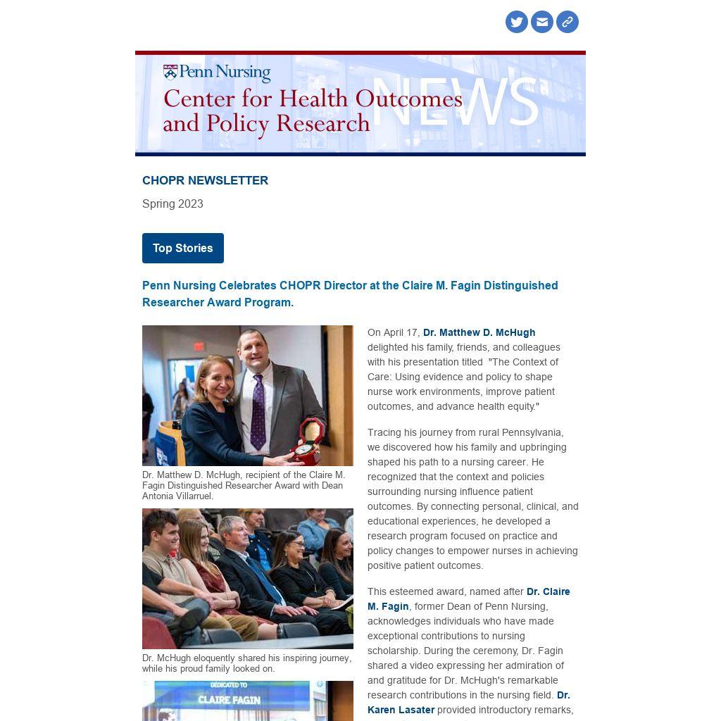Penn Nursing Celebrates CHOPR Director at the Claire M. Fagin Distinguished Researcher Award Program. |