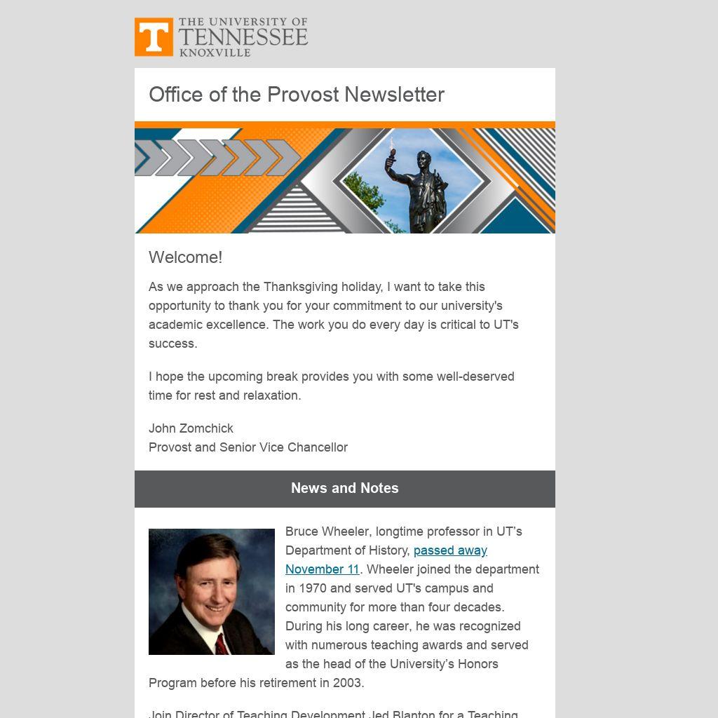 As we approach the Thanksgiving holiday, I want to take this opportunity to thank you for your commitment to our university's academic excellence. The work you do every day is critical to UT's success.