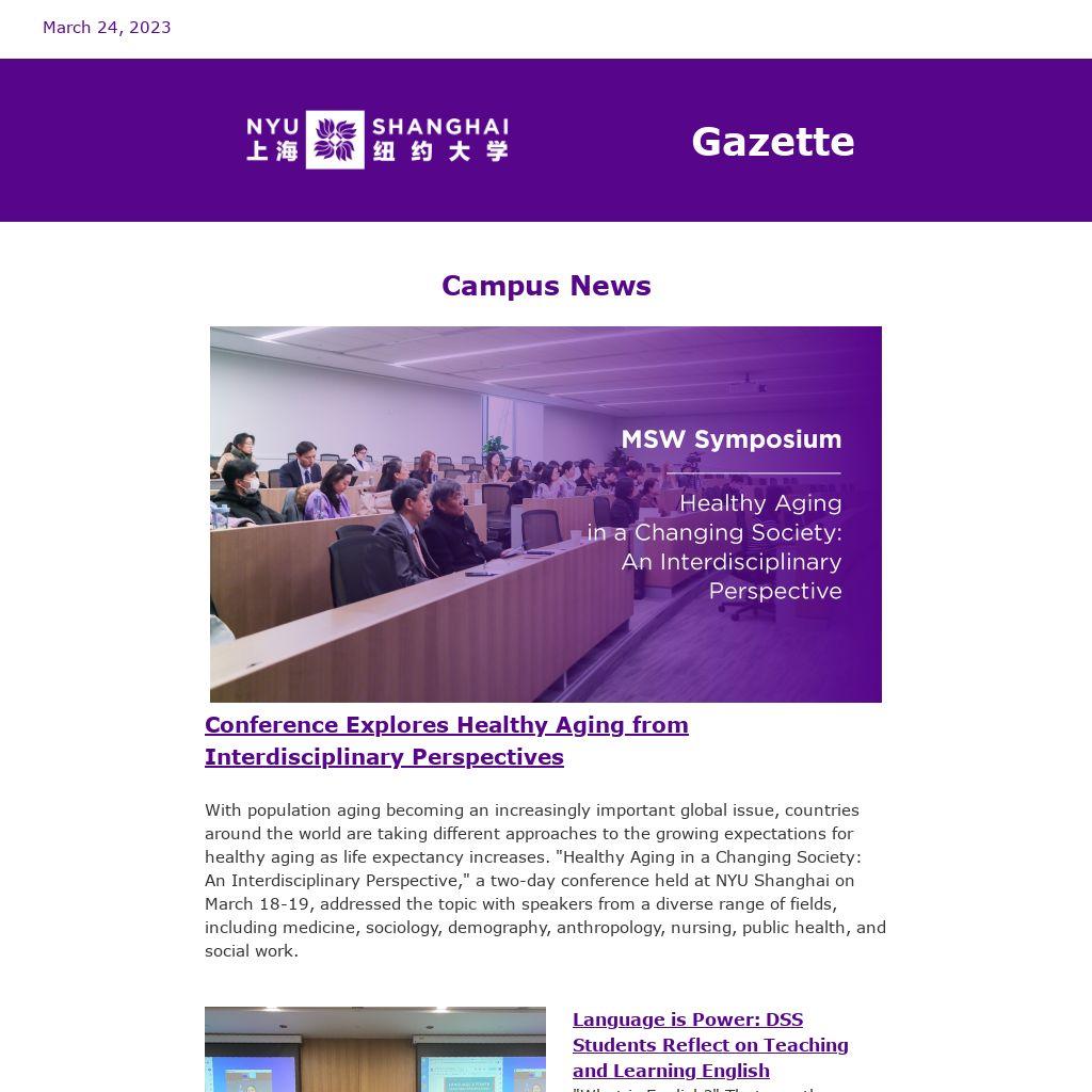 For a complete listing of events at NYU Shanghai, check out the Weekly Events Newsletter, delivered to your inbox every Monday when school is in session. If you wish to highlight your event in the Weekly Events Newsletter, upload your event to Engage no later than the Thursday before the Monday newsletter.